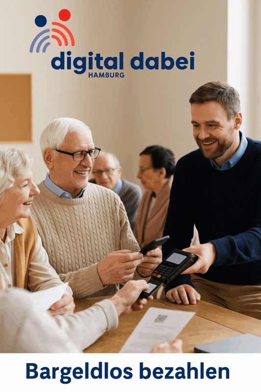 Für den Kulturkreis Walddörfer in Hamburg führt ein Team von Seniortrainerinnen und Seniortrainern eine Veranstaltung zum Thema bargeldloses Bezahlen durch.